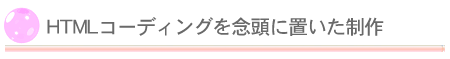 ハンドコーディング(手打ち)のメリットHTMLのハンドコーディング、いわゆる手打ちは、一般的なオーサリングツールと比べ一日の長があると考えます。ヒットウェブでは、ご予算や運用上の理由などによる特殊な事例を除いて、HTMLはすべてハンドコーディングによって記述しています。 ハンドコーディングでは、テキストエディタ1つあれば、オーサリングツールの補助に頼る必要なく、常にそうあるべきソースコードを記述することが可能です。Webサイト上に実現したい動作が新機能として実装されるまで、ソフトウェアのバージョンアップを待つ必要はありません。 |